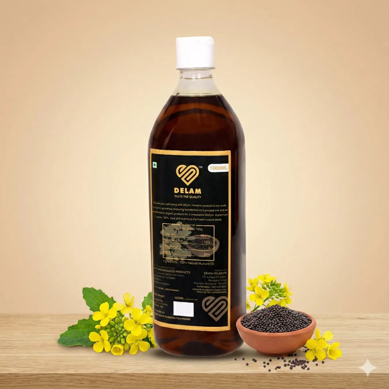 Seven Delights Mustard Oil is a hand-crafted, cold-pressed oil made from the best quality mustard seeds. It is 100% pure and free from chemicals, making it safe for everyday cooking.